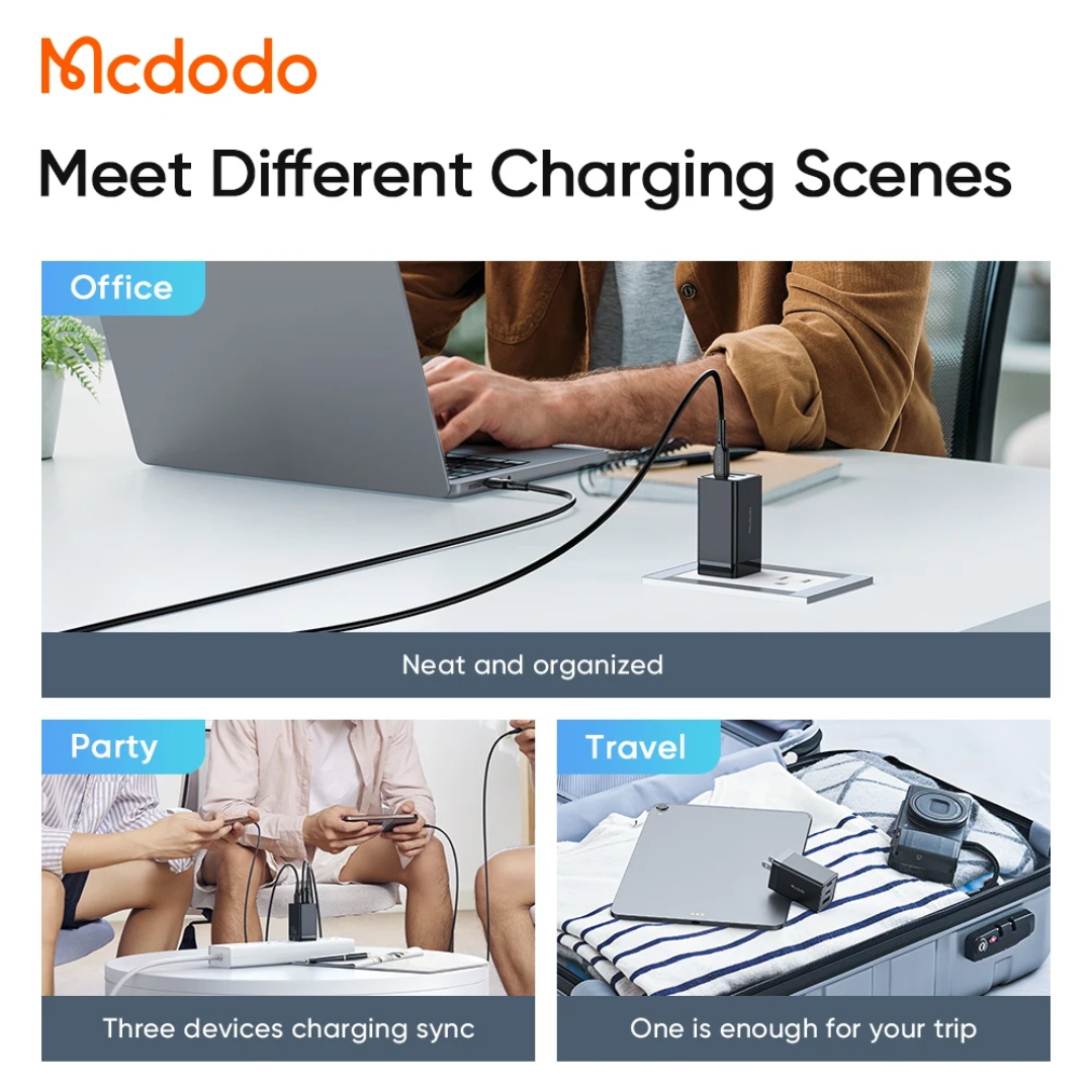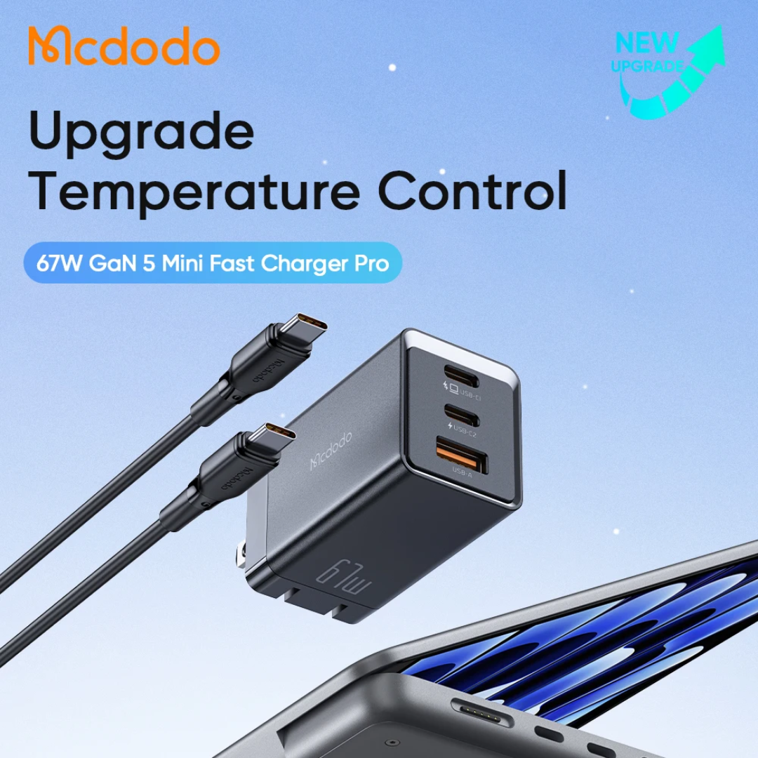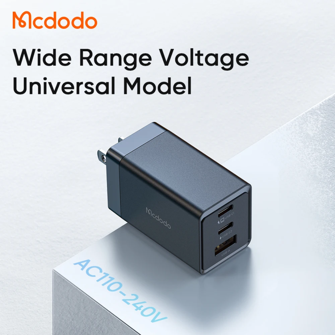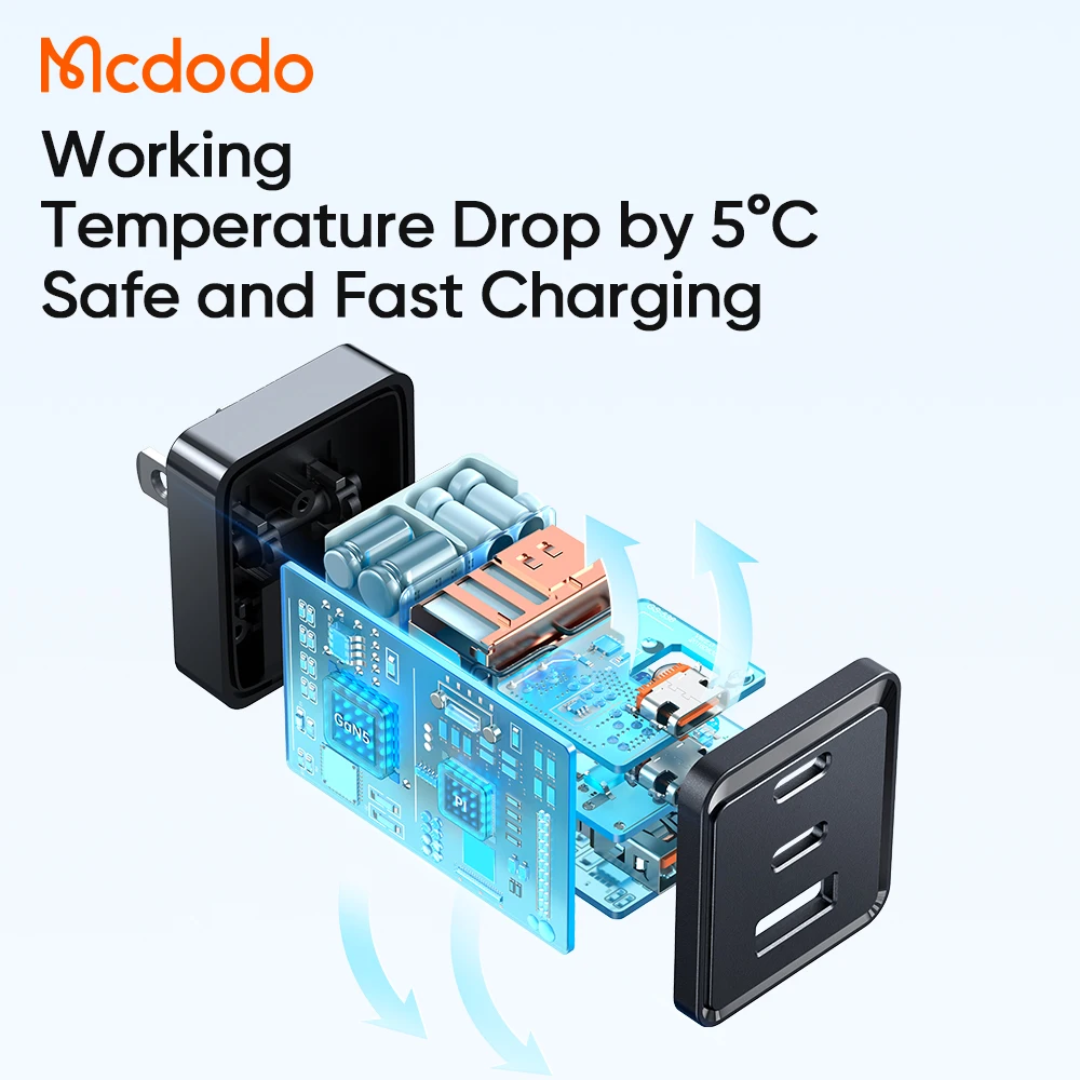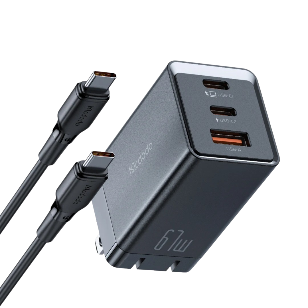 Le McDodo 153 GaN5 67W est un chargeur mural compact à technologie GaN5, offrant une puissance maximale de 67 W via 2 ports USB-C et 1 USB-A. Idéal pour charger simultanément laptops, smartphones et accessoires avec protocoles PD/PPS/QC. Compatible mondialement (110-240 V) avec protections intelligentes et câble USB-C 60 W inclus.