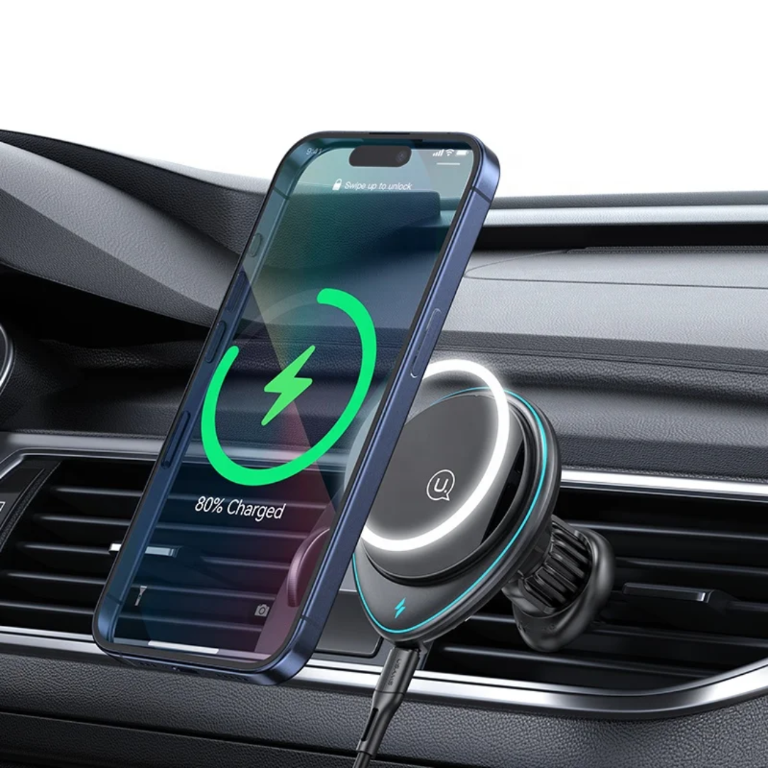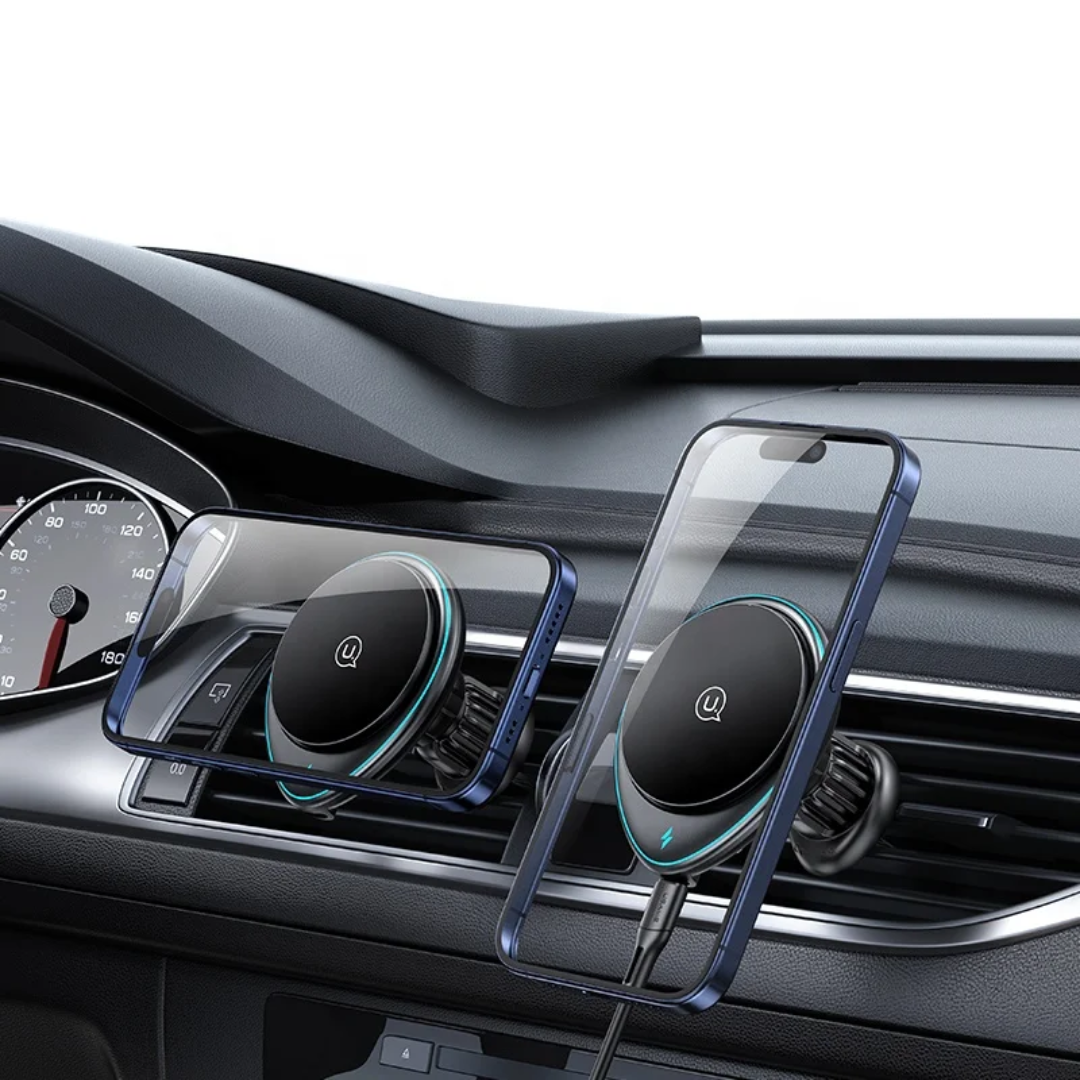 USAMS CD222 Chargeur de voiture sans fil magnétique 15W avec support téléphone